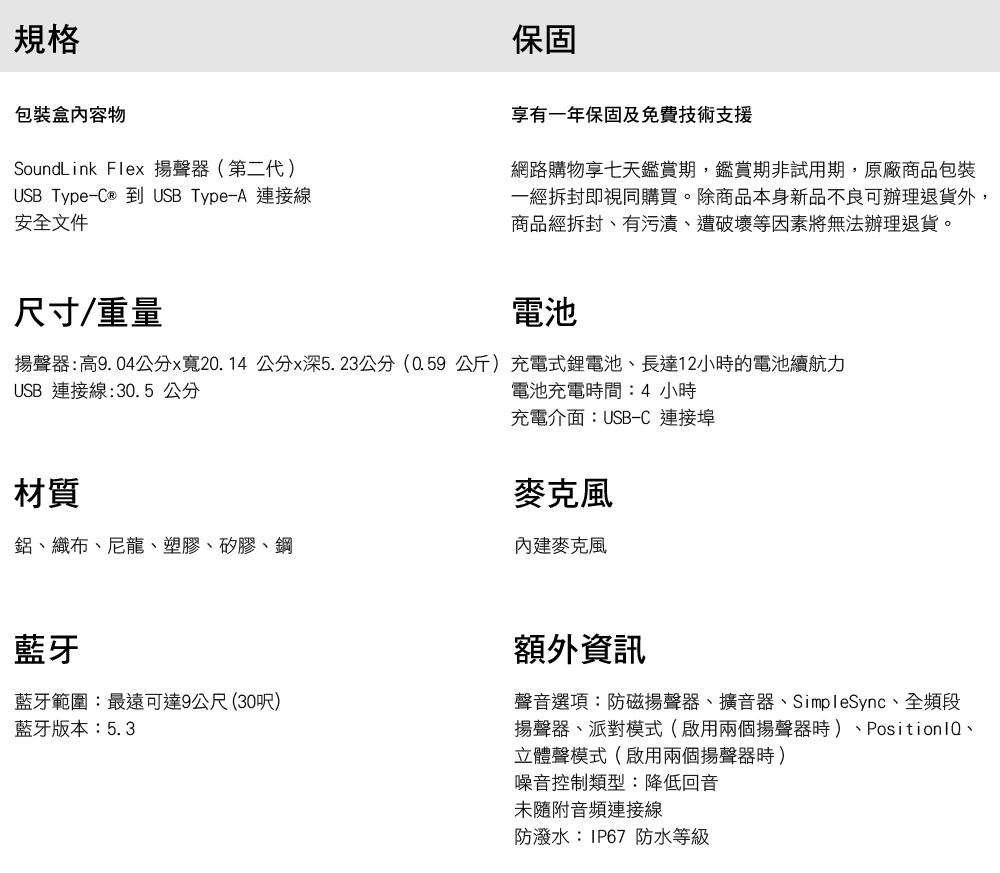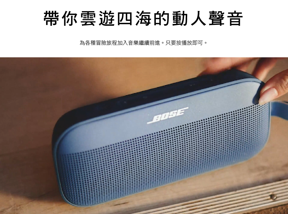 隆重介紹全新升級的 SoundLink Flex 揚聲器。它擁有令人驚豔的渾厚音質,但又小巧便攜,是您在世界各地分享音樂和美好時光的理想之選。此外,它還經久耐用,讓您可以隨心所欲地享受音樂。