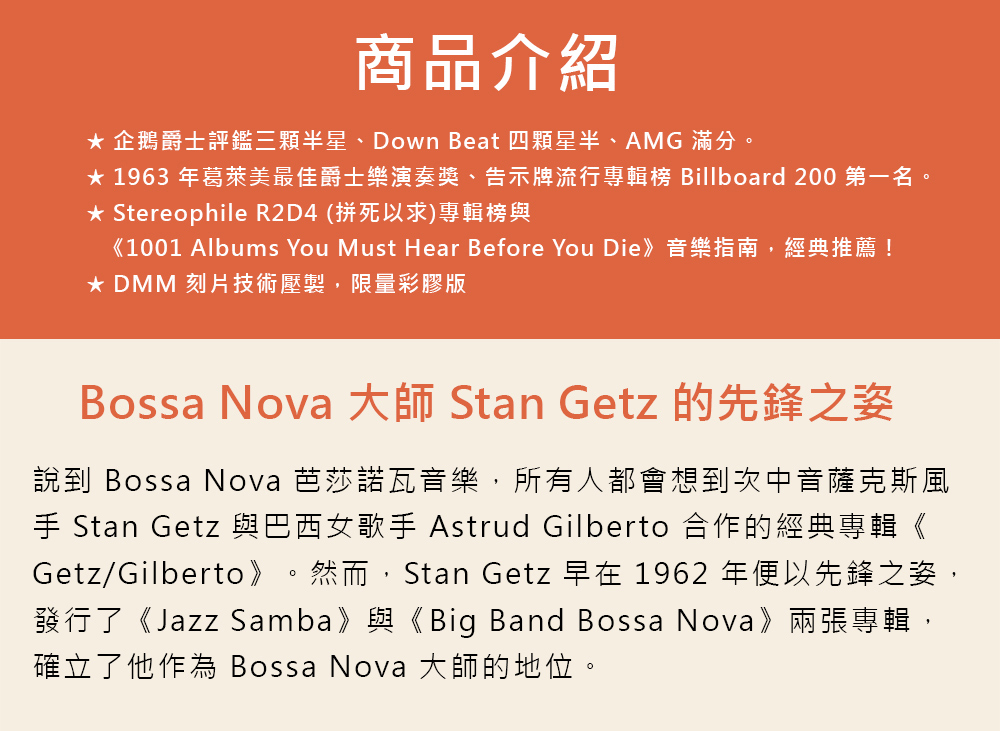 Stan Getz & Charlie Byrd / Jazz Samba , 史坦.蓋茲與查理.博德 / 爵士森巴 (180g 限量彩膠 LP)