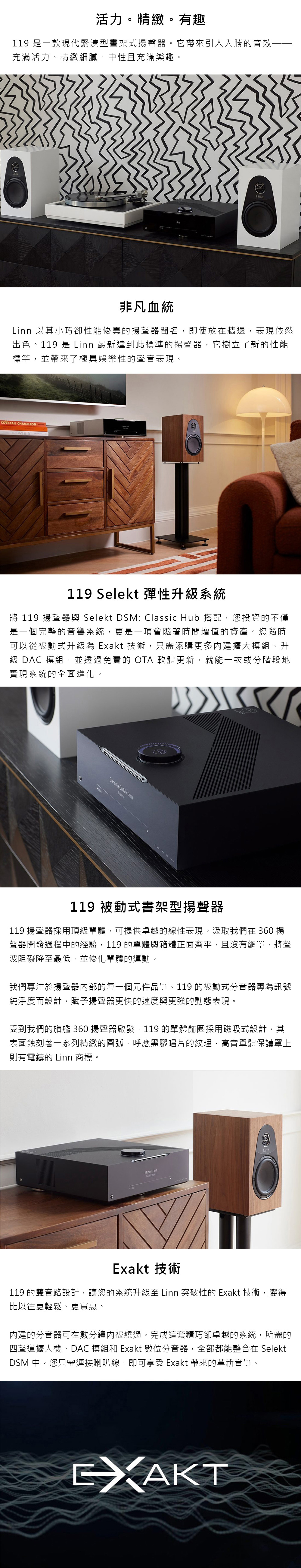 低音系統 反射式背板 (使用Linn網路音樂播放器可增加低音效果)