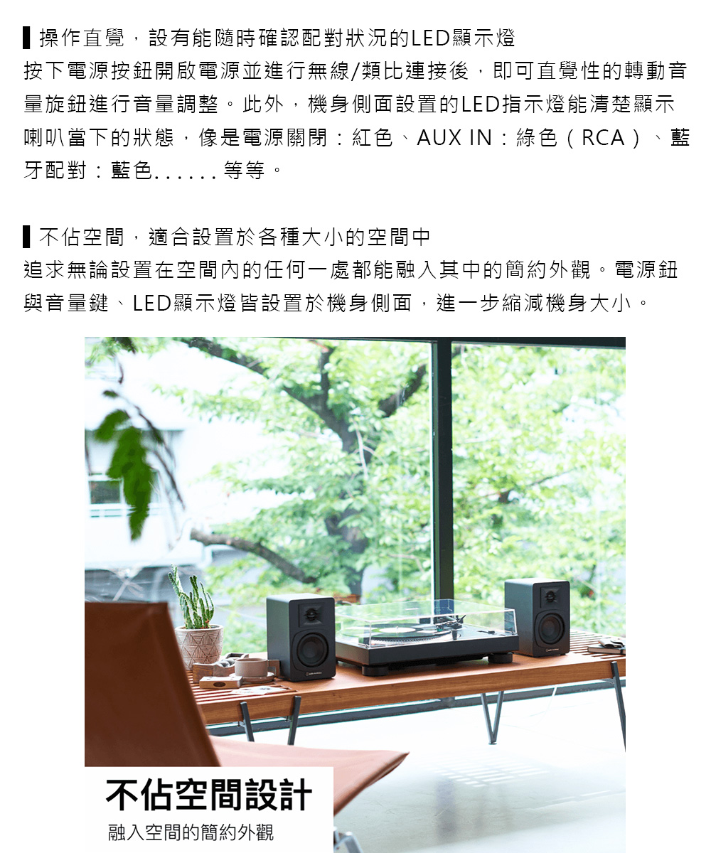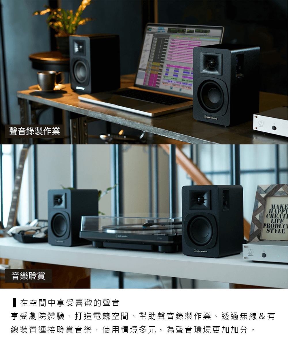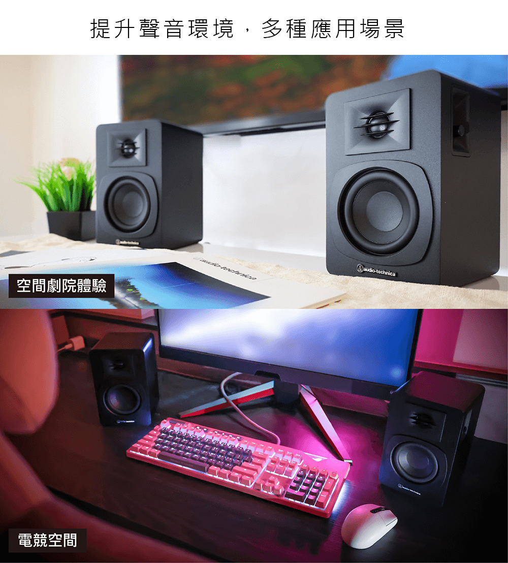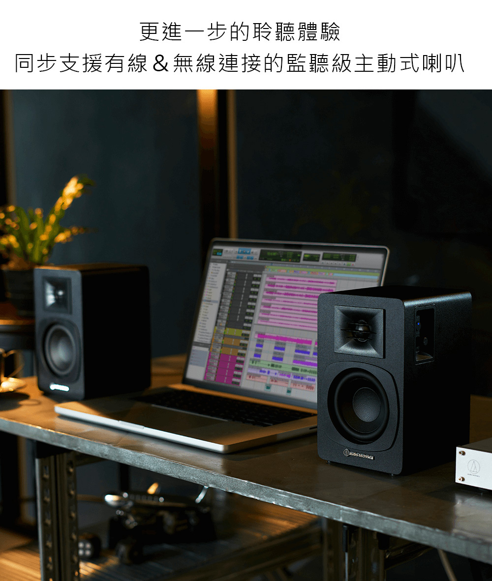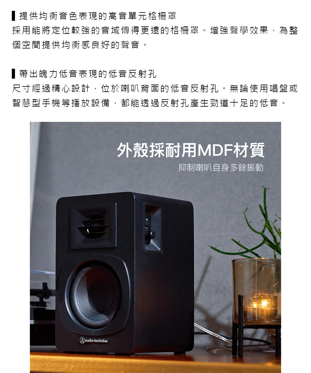 audio-technica,鐵三角,AT-SP3X,主動式喇叭,藍牙,多重配對,高音單元格柵罩,低音反射孔,MDF板材,RCA輸入