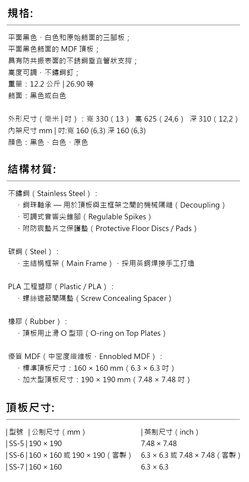 ■可調腳尖:不鏽鋼音響尖錐與防刮墊片