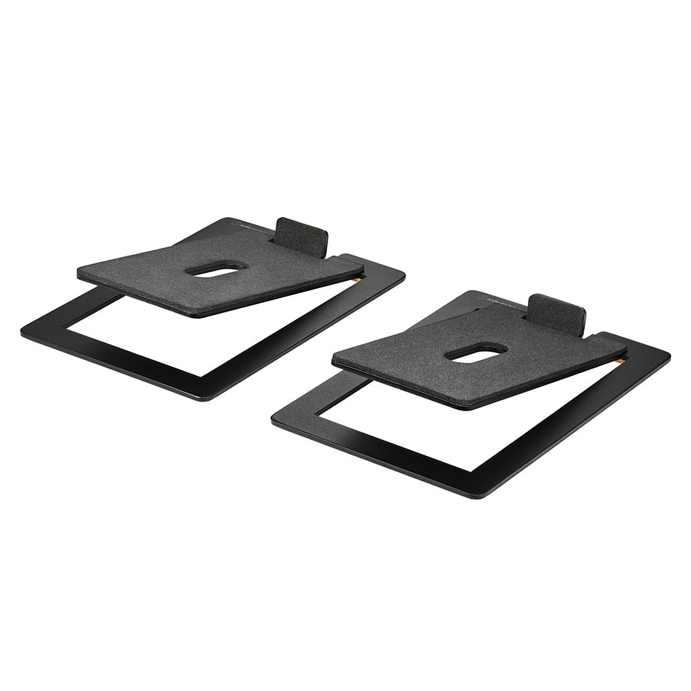 支架本體採用堅固的鋼合金材質,底部搭配可抑制多餘振動的軟木墊片,以及提升安裝穩定性的聚氨酯泡棉,能穩固承載最重達3kg的喇叭。約13°的傾斜角度設計,模擬了喇叭稍微遠離聆聽者位置的擺放情境,將聲音朝上擴散,有效傳遞至整個空間。