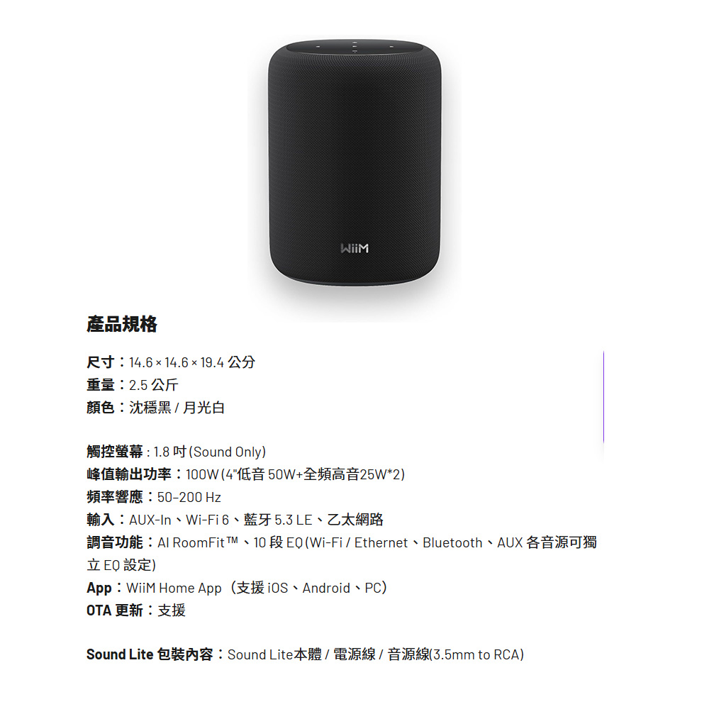 調音功能:AI RoomFit™、10 段 EQ (Wi-Fi / Ethernet、Bluetooth、AUX 各音源可獨立 EQ 設定)