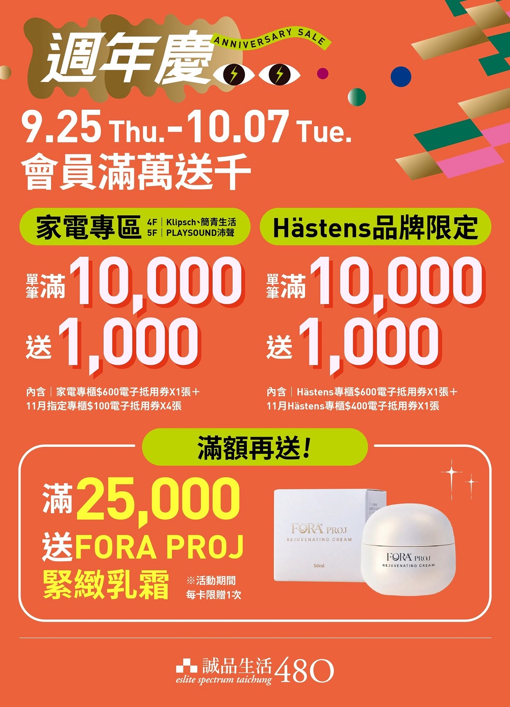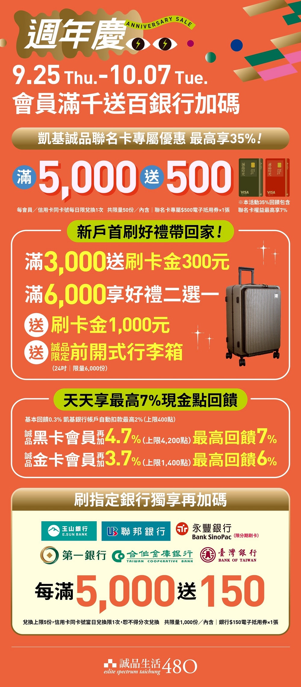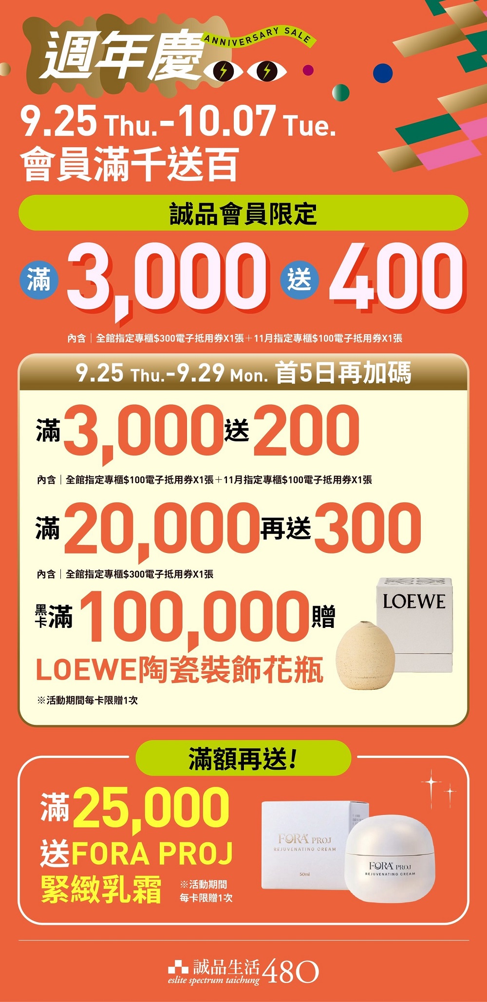 誠品生活480周年慶將於2025/9/25(四)-11/3(一)展開