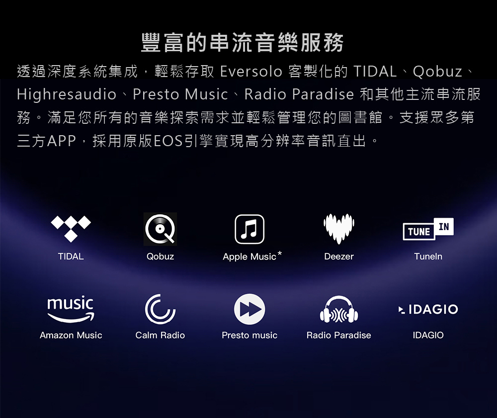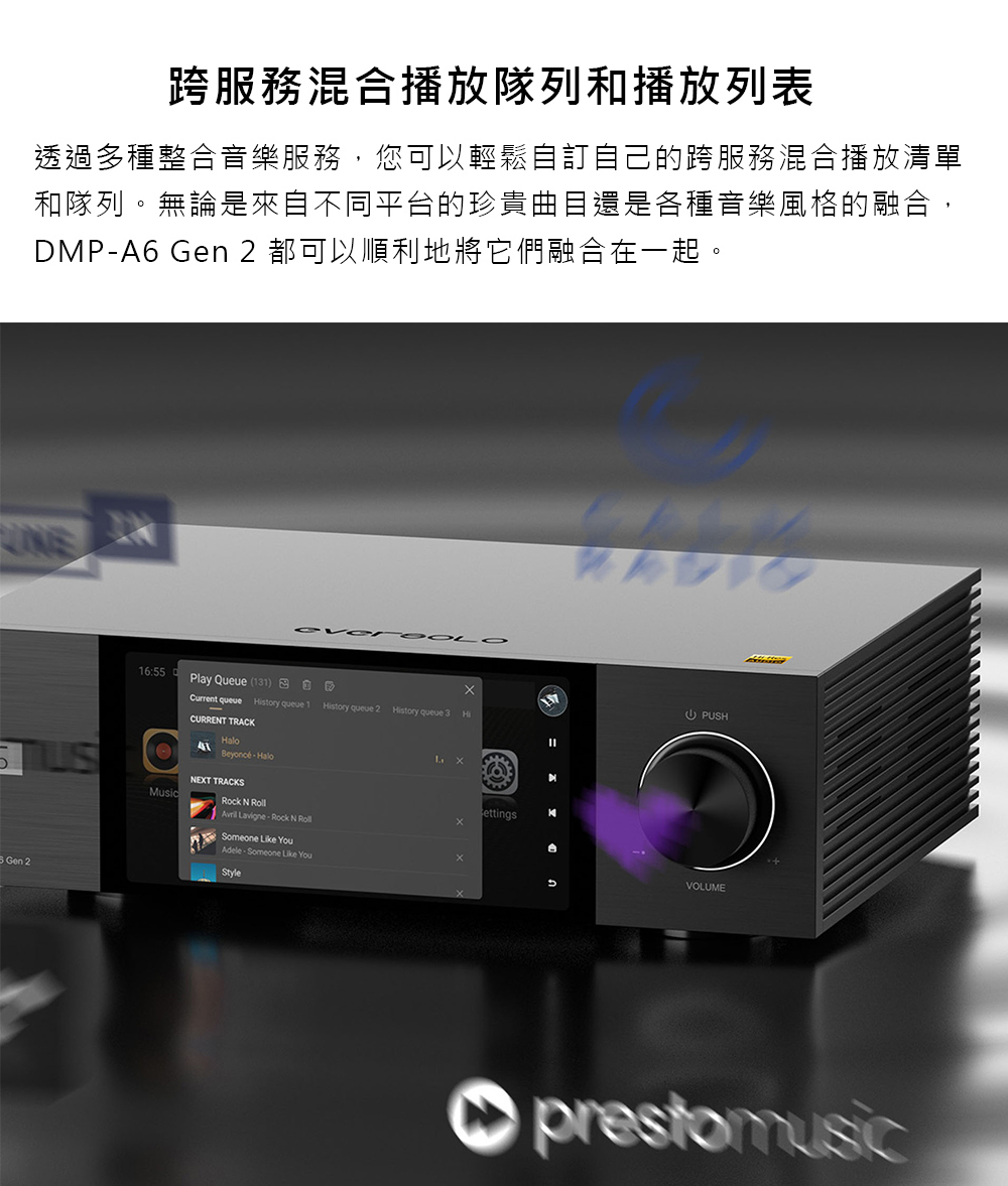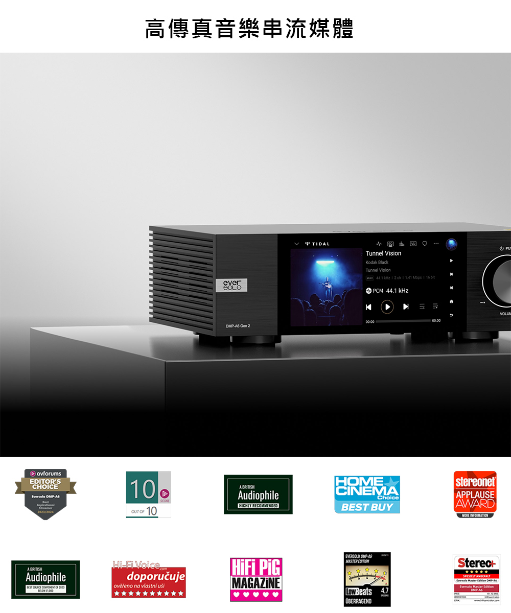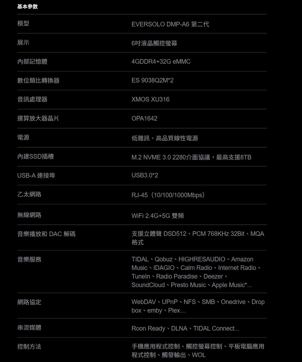 eversolo,DMP-A6 GEN2,串流播放器,DMP-A6,串流DAC播放器,高保真,HIFI,串流機,播放器,CNC工藝,DMP-A6大師版 Gen 2,飛秒時鐘,超低噪,Jitter時鐘系統,OPA1612,運放陣列,雙ES9038Q2M,XMOS晶片,DSD512 Native,EOS 音訊引擎,EVC輸出引擎,Roon Ready,Tidal Connect,四核 ARM Cortex-A55 處理器