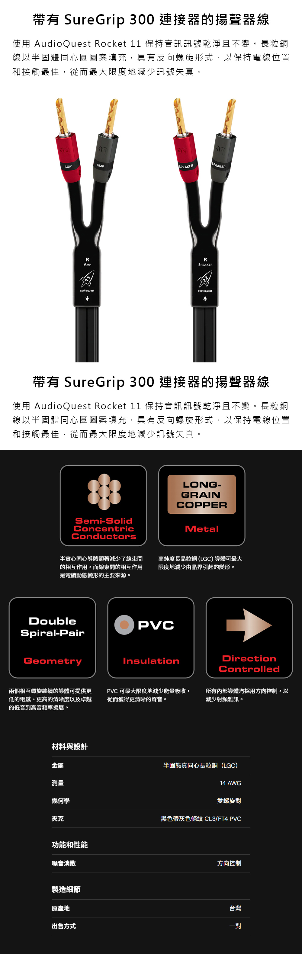 AudioQuest Rocket 11 喇叭線 2 x bananas - 2 x bananas - Gold 2.5M Pair